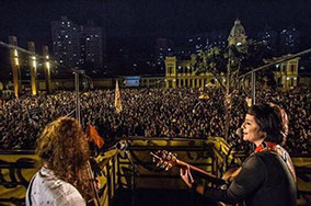Os projetos podem existir como espetáculo (onde realizo a composição, gravação, cenário, canto, toco, etc.), filme, instalação, ação ou oficina.